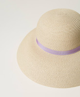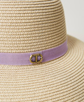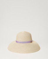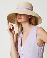 Breitkrempiger Strohhut mit kontrastfarbigem Ripsband, „Oval T“-Plakette und Größenregulierung an der Innenseite.