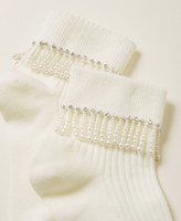 Strümpfe aus Baumwollmischung mit von Hand aufgestickten Fransen aus Strass und Perlen und „Oval T“-Logo.