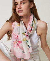 Modaltuch mit Blumenprint der Kollektion und Kontrastlogo.