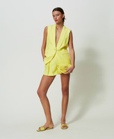 - 83% Viskose 17% Leinen. Futter: 68% Acetat 32% Polyester