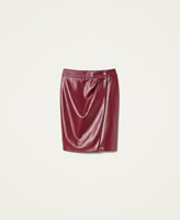 Gerade geschnittener, gefütterter Wickelrock in Lederoptik mit Druckknopf.