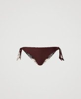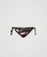 Beidseitig tragbarer Bikinitanga mit exotischem Blumenprint auf einer Seite, einfarbiger zweiter Seite, verstellbaren Bindebändern an den Seiten und Logoprint an der Rückseite.