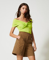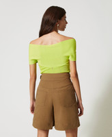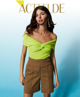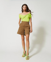 Ein vielseitiges, charaktervolles Key-Piece für den Sommer. Bermudashorts aus recycelter Baumwolle mit Riemen und Schnalle an der Seite, Reißverschluss an der Vorderseite, Schrägtaschen und Rippen, die die ausgestellte Passform betonen. Das Modell gehört zum Conscious Program „Revive“ von Actitude by Twinset.