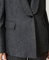 Gefütterter Blazer aus Wolle-Lurex-Mischung mit Fischgrätenmuster, Reverskragen und einzelnem Verschlussknopf.