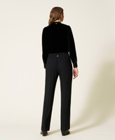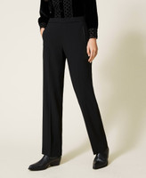 Hose aus mattem Envers-Satin-Cady mit Eingrifftasche, Reißverschluss an der Seite, Gummizug im Bund auf der Rückseite und Bügelfalte.