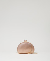 Gefütterte Clutch aus Kunstharz mit Alloverstrass im gleichen Farbton, Schnappverschluss mit Magnet und abnehmbarer Tragekette mit eingesetzten Oval Ts aus Metall.