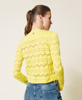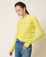 Ein Knitwear-Must für 24-Stunden-Looks. Figurbetonter Cardigan aus Baumwolle mit Lochmusterungen, Rundhalsausschnitt, Knopfverschluss und langen Ärmeln.