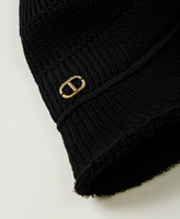 Fischerhut aus Gestrick aus Viskosemischung mit angenähtem Oval T mit hellgoldfarbenem Finish.