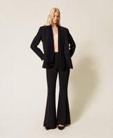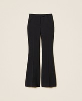 Flared-Hose aus Crêpe mit Reißverschluss und Hakenverschluss im Herrenstil, Eingrifftaschen und Bügelfalte.