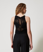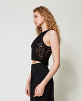 Am Rahmen gehäkeltes Top aus Baumwolle mit geometrischem Blumendessin. Das figurbetont geschnittene Rundhalsmodell ist mit einer „Oval T“-Logoplakette an der Rückseite versehen.