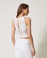 Am Rahmen gehäkeltes Top aus Baumwolle mit geometrischem Blumendessin. Das figurbetont geschnittene Rundhalsmodell ist mit einer „Oval T“-Logoplakette an der Rückseite versehen.