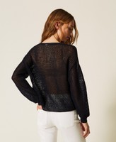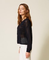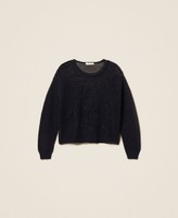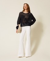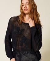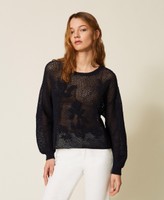 Pullover aus Baumwollmischung (49 % recycelte, zertifizierte Pre-Consumer-Baumwolle) in Stretch-Qualität mit Netzverarbeitung und handgefertigter floraler Stickerei vorne. Locker geschnittenes Modell mit langen Ärmeln mit tiefem Ärmelausschnitt und Rippkanten. Etwaige Mikroverunreinigungen sind typisch für recycelte Materialien. Dieser Artikel ist Teil der „Archive“-Auswahl, die von den ikonischsten und beliebtesten Pieces aus den Twinset-Kollektionen inspiriert wurde.
