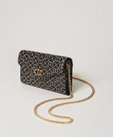 Handytasche in Lederoptik mit Saffiano-Print, Überschlag und Magnetverschluss, Oval T-Logo aus Metall und Tragekette.