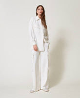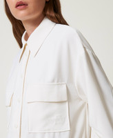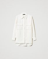 Hemd aus der Actitude Collection aus Krepp-Pikee mit Druckknöpfen. Das Modell hat lange, weite Ärmel, überschnittene Schultern, eine Rückenpasse, aufgesetzte Pattentaschen auf der Vorderseite, einen abgerundeten Saum und einen geraden Schnitt.