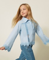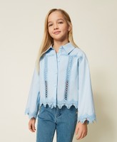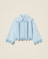 Hemdbluse aus Popeline mit Spitzeneinlagen