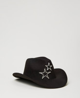 Hut aus der Actitude Collection aus Tuch mit breiter Krempe, Sternapplikation aus Chatons und Verstellriemen an der Innenseite.