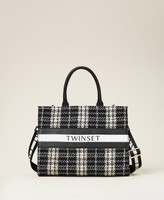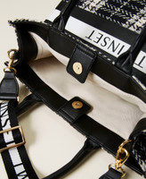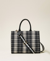 Großer Shopper aus Karostoff mit Logo, zwei Henkeln und abnehmbarem Logo-Trageriemen.