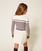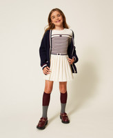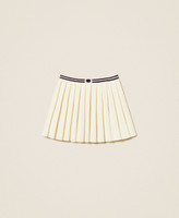 Kurzer, leicht ausgestellt geschnittener Mädchen-Plisseerock aus Gestrick aus Viskosemischung mit zweifarbigen Streifen und „Oval T“-Logostickerei am elastischen Taillenbund.