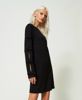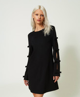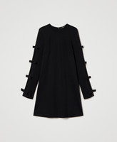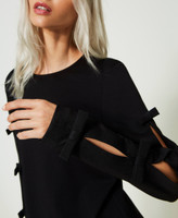 Kurzes Kleid aus der Actitude Collection aus Milano-Strick mit Rundhalsausschnitt, Reißverschluss an der Rückseite und langen Ärmeln mit Schleifchen und Cut-outs.