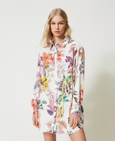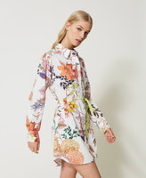 Kurzes Hemdblusenkleid aus Popeline aus der Actitude Collection in Limited-Edition mit Sanderson-Blumenprint und passendem Neongürtel.