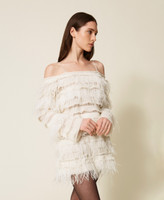 Kurzes Off-Shoulder-Strickkleid mit Federn