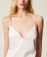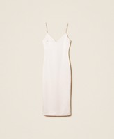 Langes Kleid aus Duchesse mit Trägern, Herz-Ausschnitt vorne und V-Ausschnitt hinten, schmalen Trägern, Seitenreißverschluss und Schlitz am Abschluss hinten. Perfekt für Partys und Feste.