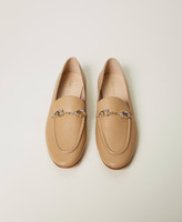 Mokassin im Loaferstil aus Leder mit strassbesetztem Oval T und Thunitsohle.