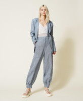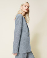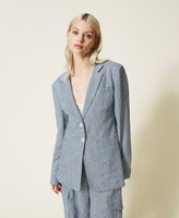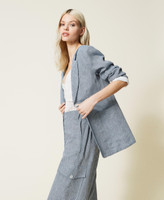 Leinenblazer aus der Actitude Collection mit Mikro-Hahnentrittmuster, V-Ausschnitt an der Rückseite und Schulterpolstern.