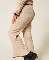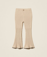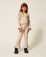 Mädchen-Strickhose aus Viskosemischung mit Rippenmuster im Flare-Fit mit kontrastierender Stickerei an den Beinabschlüssen, elastischem Taillenbund und „Oval T“-Logoplakette an der Rückseite.
