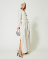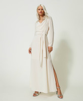 Maxikleid aus der Actitude Collection aus Fil-Coupé-Krepp mit V-Ausschnitt, Seitenreißverschluss, Seitenschlitzen und Schleife an der Rückseite.