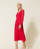 Locker geschnittenes Maxikleid aus Fil-Coupé mit geometrischen Motiven aus farblich abgestimmtem Lurexgarn, V-Ausschnitt und Gummizug in der Taillennaht. Dieser Artikel ist Teil der „Archive“-Auswahl, die von den ikonischsten und beliebtesten Pieces aus den Twinset-Kollektionen inspiriert wurde.