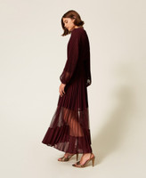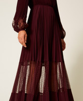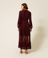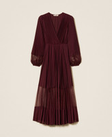 Maxikleid aus plissiertem Georgette mit transparenten Einsätzen aus Plumetis-Tüll. Das locker geschnittene Modell hat einen überlappenden V-Ausschnitt, lange Ärmel, eine Taillennaht und eine „Oval T“-Logoplakette an der Rückseite. Perfekt für Partys und Feste.