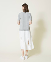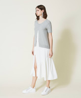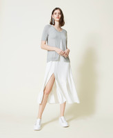 Ungefüttertes Maxikleid mit Gestrick aus leichter Baumwollmischung und kontrastierender Partie aus Crêpe de Chine in Unterkleidoptik.