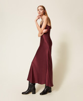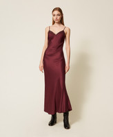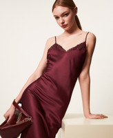 Maxikleid aus Satin mit Spitze
