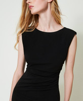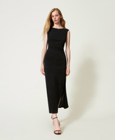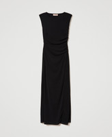 Ärmelloses Maxikleid aus Interlockjersey von kreppartigem Griff mit Raffung an der Taille, Seitenreißverschluss und Schlitz an der Unterpartie.