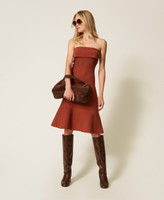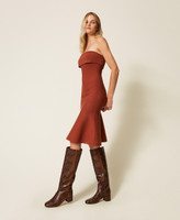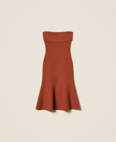Figurbetontes Midi-Bustierkleid aus Viskose-Stretch-Gestrick mit Bandeau an der Oberpartie und Godetfalten, die dem Rock ein weites Volumen schenken.