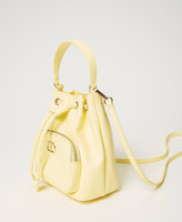 Mini-Beuteltasche aus Lederimitat mit Saffianprägung, Oval T, Henkel, Umhängetasche, Tunnelzug und Außenfach.