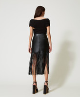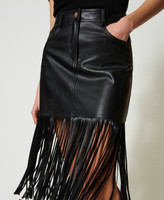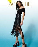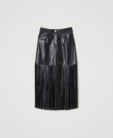 Minirock aus der Actitude Collection in Lederoptik mit Fransen am Saum, fünf Taschen, Reißverschluss und Druckknopf.