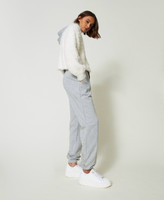 Vom Künstler Myfo für die Actitude Collection designte Joggers in Limited Edition. Aus Baumwollsweat gefertigtes Modell mit platziertem Glitzersprenkelprint, elastischem Taillenbund mit drei kontrastfarbigen Zugkordeln, Seitentaschen, Dollar-Logo und elastischen Bündchen an der Unterpartie.