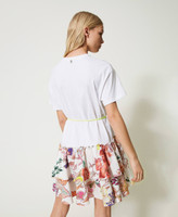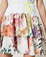 Kurzes Kleid aus Jersey und Popeline aus der Actitude Collection in Limited-Edition mit Alloverprint mit Sanderson-Blumenmotiv, zwei Volants und passendem Neongürtel.