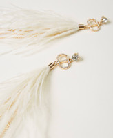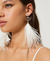 Ohrringe mit Steckverschluss, strassbesetztem Oval T und Quastenanhänger aus Federn und Gliederfransen mit Strass.
