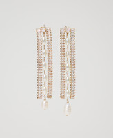 Eine Kaskade aus Fransenketten aus Strass und Perlen definiert da Design dieser Hängeohrringe mit Steckverschluss. Wundervolles Funkeln für unvergessliche Looks.