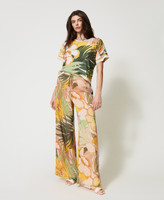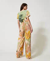 Gefütterte Palazzohose aus Krepon mit „Wild Flower“-Print und Tunnelzug in der Taille. Ideal für auffällige grafische Kombinationen.