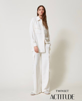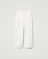 Hose aus der Actitude Collection aus Krepp-Pikee mit Utility-Taschen an den Seiten. Das Modell hat einen Seitenreißverschluss, einen hinten leicht gerafften Taillenbund, französischen Taschen und einen Palazzoschnitt.