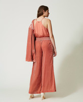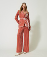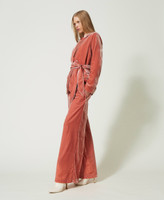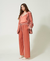 Locker geschnittene Full-Length-Palazzohose aus Pannesamt aus Viskose mit Tunnelzug im elastischen Taillenbund und Seitentaschen.