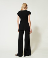 Schenken Sie Ihren Looks eine moderne Note mit dieser in Italien gefertigten Palazzohose aus Viskosemischung mit einem Mix aus Strickrippen, die Plisseefalten entstehen lassen. Das Modell ist am elastischen Taillenbund mit einer „Oval T“-Logoplakette versehen. Leicht zu tragen und zu kombinieren.