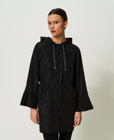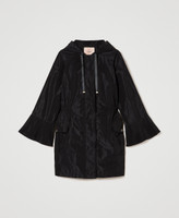 Twinset hat den klassischen Parka hier neu interpretiert aus einem leichten Taft mit Memoryeffekt und geradem Schnitt, der durch den Gummizug in der Taille femininer wirkt. Dazu ist das Modell mit einem gefütterten Tunnelzug im Kapuzenkragen, einem Druckknopfverschluss mit Logo, Volants mit Akkordeonplissees an den Ärmeln und Pattentaschen. Mühelos kombinierbar, um dem Look im Handumdrehen stilvolle Aktualität zu schenken.