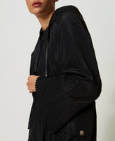 Parka aus leichtem Taft mit Memory-Effekt, Tunnelzugkapuze, Plisseevolants an den Ärmelabschlüssen und Gummizug in der Taille.