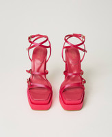 Satin-Sandalette aus der Actitude Collection mit mehreren Riemen in Nude-Optik, Plateau vorne und hohem Absatz, Thunitsohle.