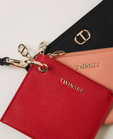 Drei flache Pochette-Taschen in Lederoptik mit Saffiano-Print, Riemen und Karabinerhaken, Reißverschluss und Metall-Logos.